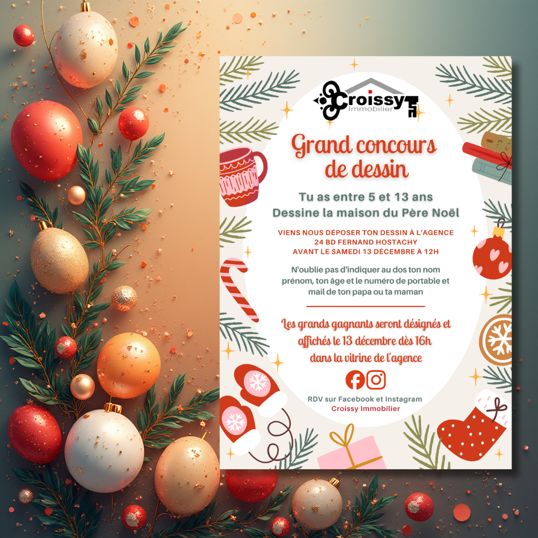 Réalisation d’un flyer pour la période de Noël 2025, avec un jeu concours organisé par l’agence.