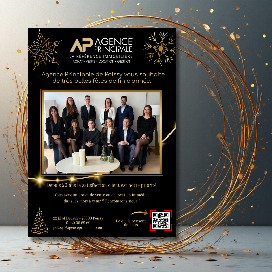 Réalisation d’un flyer pour souhaiter de belles fêtes de fin d’année et asseoir la notoriété de l’agence.